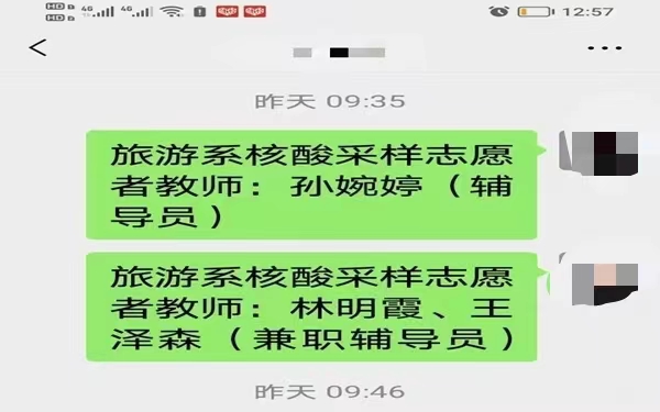 为做好校园疫情防控工作,学院开展全员核酸检测,但是面对数千位师生,学院的核酸采集能力明显不足。学院党委立即决定征集志愿者,一个征集通知发布在各个工作群中。“需要志愿者吗?我可以......”“我也可以......”