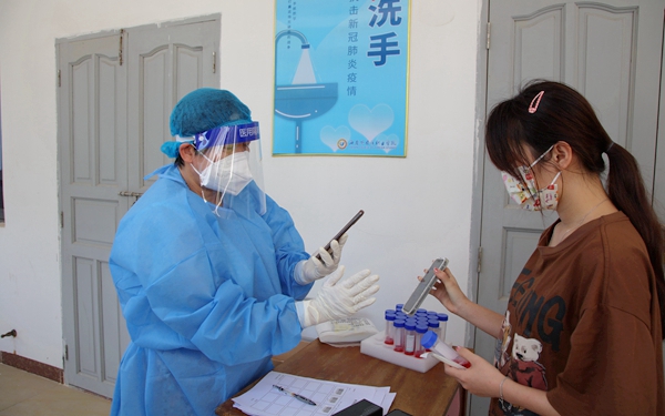 4月的天,艳阳高照,但是在这烈日炎炎底下,有着一群蓝白色身影在不停的呼喊着、指挥着,“同学们,排好队,戴好口罩,保持一米距离”、“张大嘴、啊......”。这是在beat365英国官方网站新实训楼的核酸检测现场。