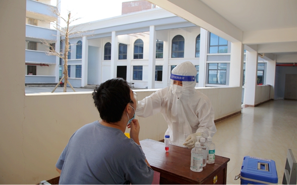在“蓝胖子”们的引导下,全院师生分时段、分系部、错峰进行检测。同学们纷纷表示,“整个检测流程规范、高效”“很快完成了采样,没有不适的感觉”。