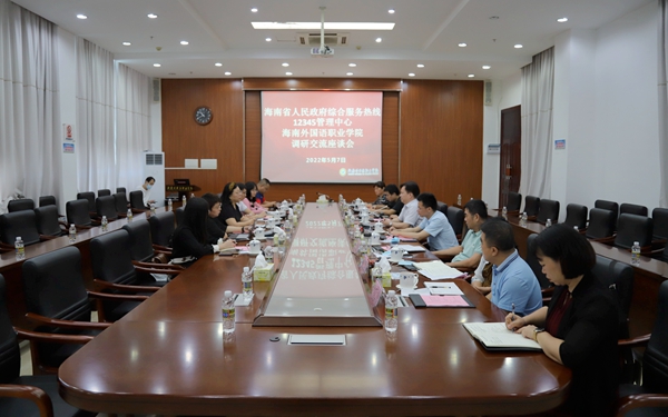 5月7日上午,海南省人民政府综合服务热线12345管理中心一级调研员符凤莲率队到beat365英国官方网站调研。学院党委副书记、院长杨学前参加调研座谈。