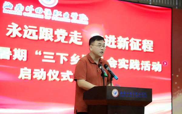 为庆祝中国共产党成立101周年,激励广大党员团员和青年大学生深入贯彻落实习近平总书记在庆祝中国共产主义青年团成立100周年大会上的重要讲话和海南省第八次党代会精神,以优异成绩迎接党的二十大胜利召开,7月1日上午,beat365英国官方网站“喜迎二十大 永远跟党走 奋进新征程”2022年大学生暑期文化、科技、卫生“三下乡”社会实践活动正式启动。学院党委书记佴建乔,党委委员、副院长杨毅出席活动,团委副书记张桓桓主持活动。