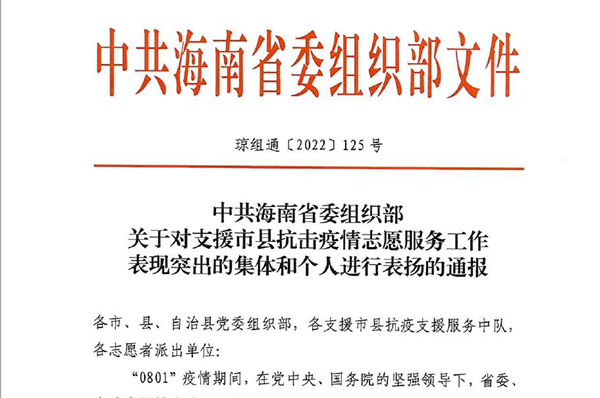 11月16日,中共海南省委组织部发布《关于对支援市县抗击疫情志愿服务工作表现突出的集体和个人进行表扬的通报》,对在“0801”疫情期间参与抗击疫情志愿服务工作并表现突出的302个集体和515名个人予以通报表扬。