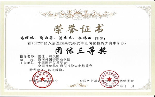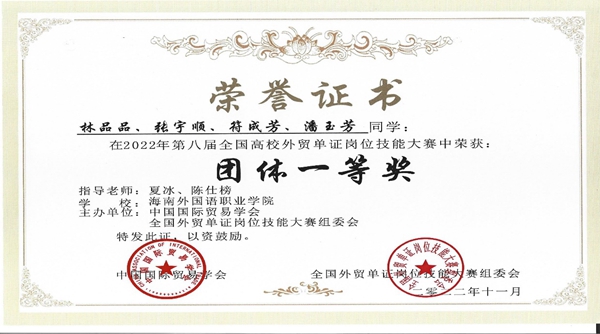 近日,2022年第八届全国高校外贸单证岗位技能大赛比赛结果揭晓,beat365国际商务学院国际贸易专业两支代表队在比赛中发挥出色、喜获佳绩,共斩获团体一等奖和三等奖,以及个人一等奖、二等奖、三等奖等多个奖项。