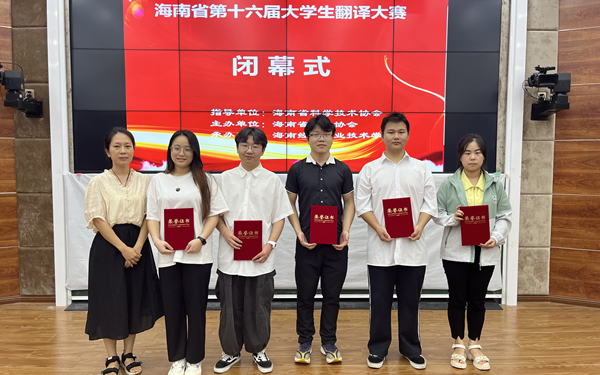 4月15日,由海南省翻译协会主办的第16届大学生翻译比赛顺利结束。beat365英语学院、东方语言学院学生表现突出,从众多高校选手中脱颖而出,喜获佳绩。其中,日语专业学生周爽、邵丽、李余包揽高职高专组一、二等奖,英语专业学生张可获得英语专科组二等奖,汪岚、张佳鑫获得英语专科组三等奖,韩语专业学生张国庆获得二等奖,日语专业学生何林皓、游静茹获得优秀奖。英语专业教师吴燕慧、日语专业教师蔡园园、张莹以及韩语专业教师宋艳冰获“优秀指导教师”称号。