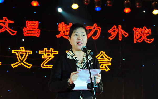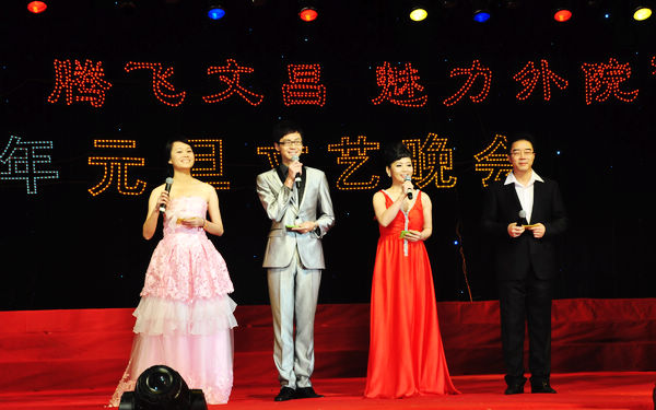 钟声敲响,伴着我院师生带来的情景大合唱《永远的邀请》,晚会正式拉开序幕。随后,袁陵南院长致开幕词,肯定了在文昌航天城和海南国际旅游岛建设的发展机遇下,文昌市委市政府紧紧抓住机遇、精心谋划,带领文昌人民努力奋斗取得的辉煌成绩,以及在文昌市委市政府和社会各界的大力支持与帮助下,我院在服务当地经济社会宗旨下取得的丰硕办学成果;展望新的一年,袁院长指出我院要以创建“特色鲜明的国家骨干高职院校”为目标,不断提升办学水平,为文昌航天城和海南国际旅游岛建设培养培训优秀外语应用型人才,同时希望市委市政府、市直各部门、各兄弟学校及社会各界,一如继往地支持学院办学,形成市校共建、校企合作,继续谱写腾飞文昌、魅力外院的新篇章。