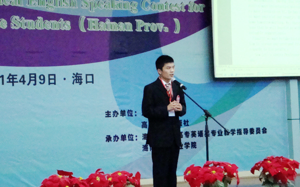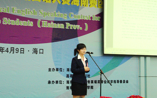 据了解,全国高职高专实用英语口语大赛海南赛区比赛是省教育厅为进一步深化高职高专英语课程教学改革,不断激发高职高专学生学习英语的积极性,努力提高高职高专学生英语口语表达能力而举办的一项重要赛事。本届大赛共吸引了来自14所高职院校的34名选手参加。大赛内容由脱稿发言、现场描述和情景交流三部分组成,既考核了学生的语言应用能力、激发了他们学习英语的热情,也锻炼了学生的胆量,对他们今后的学习与发展具有很深远的意义。