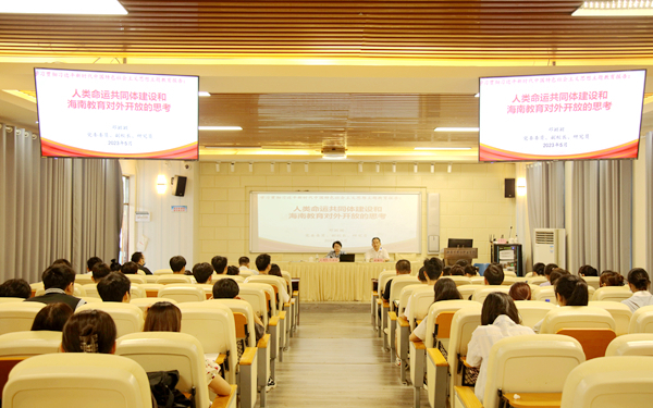 党课分为“人类命运共同体与教育国际化”“党中央对海南对外开放的决策部署”“海南对外开放的重要内容--海南国际教育创新岛”“beat365英国官方网站的思考和担当”四个部分。