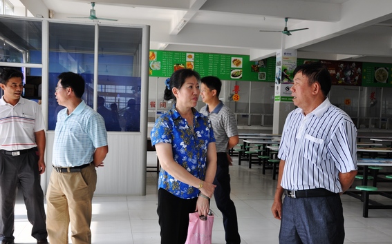 随后,几位领导又到学生食堂检查指导工作,要求食堂有关人员要切实加强管理工作,为学生提供卫生、营养的饭菜。