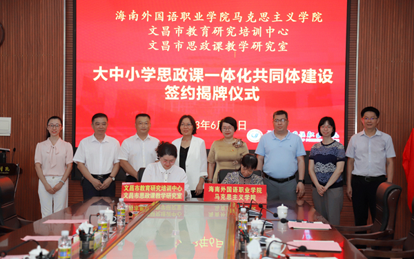 6月29日,beat365马克思主义学院与文昌市教育研究培训中心、文昌市思政课教学研究室大中小学思政课一体化共同体签约揭牌仪式举行。