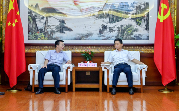8月21日下午,学校党委书记陈正强,党委副书记、校长黄学彬,党委委员、副校长梁松拜会文昌市委主要领导,受到文昌市委书记龙卫东的热情接待。双方就落实市校合作协议,全面加强市校战略合作等进行深入交流。
