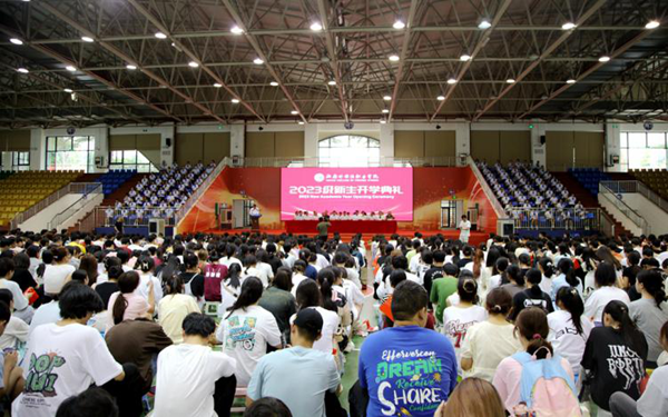弦歌不辍,芳华待灼,莘莘学子,共续华章。9月14日下午,beat365英国官方网站2023年新生开学典礼拉开帷幕。秉承着“会通中外、德能双馨”校训,来自五湖四海的两千五百多名新生齐聚一堂,满载憧憬与希望,以昂扬奋斗的青春姿态,共同开启海外院逐梦之旅。学校领导陈正强、黄学彬、梁松、杨毅、时秀梅,各部门主要负责人、二级院(部)党政主要负责人、2023级新生及其辅导员以及老生代表共同出席开学典礼。
