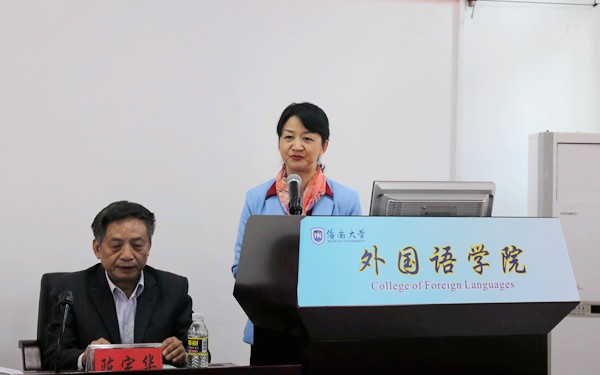 我院特聘教授,海南省认知诗学会发起人熊沐清教授在讲话中对参与此次大会的召开付出努力工作的所有人员表示感谢。他指出,现如今,认知诗学研究实现全球化,我国对认知诗学的研究也备受国际社会的肯定。此次成立海南省认知诗学学会,能够为海南省外语学术研究提升到新的水平做出积极贡献。