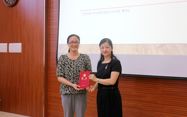 讲座结束后,会议室内响起了热烈的掌声。在提问环节,与会教师纷纷围绕学生培养、学术研究等各自关心的问题向覃秀红教授请教,均得到了覃秀红教授的解答和回应。我院东语系耿铁珍教授在总结发言时指出,覃秀红教授的讲座让我们警觉出应该怎样教学、思考企业需要什么样的人才、学习小语种是为了什么、培养专科的学生应该怎样去培养等等,希望以后进一步与广西民族大学东南亚语言文化学院的合作,共同承担且共同分享。