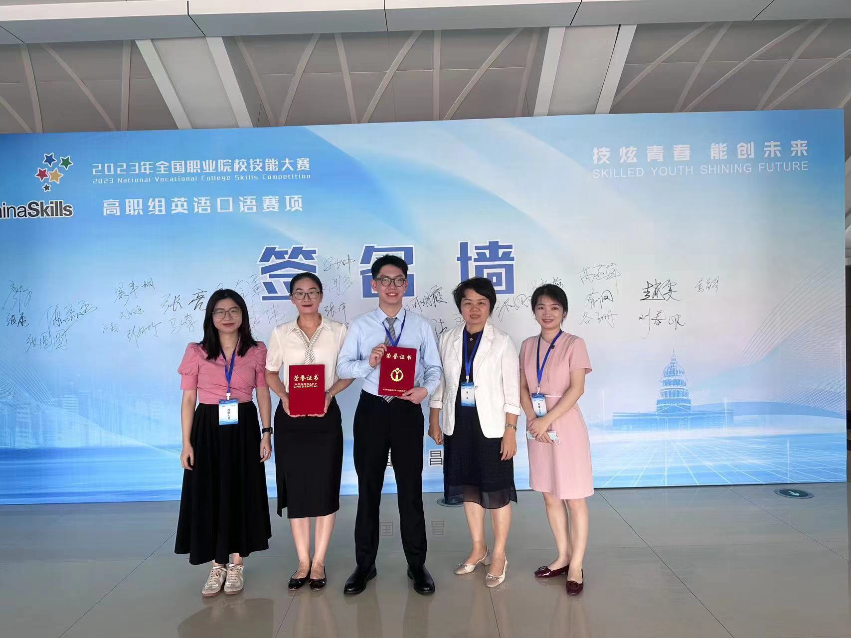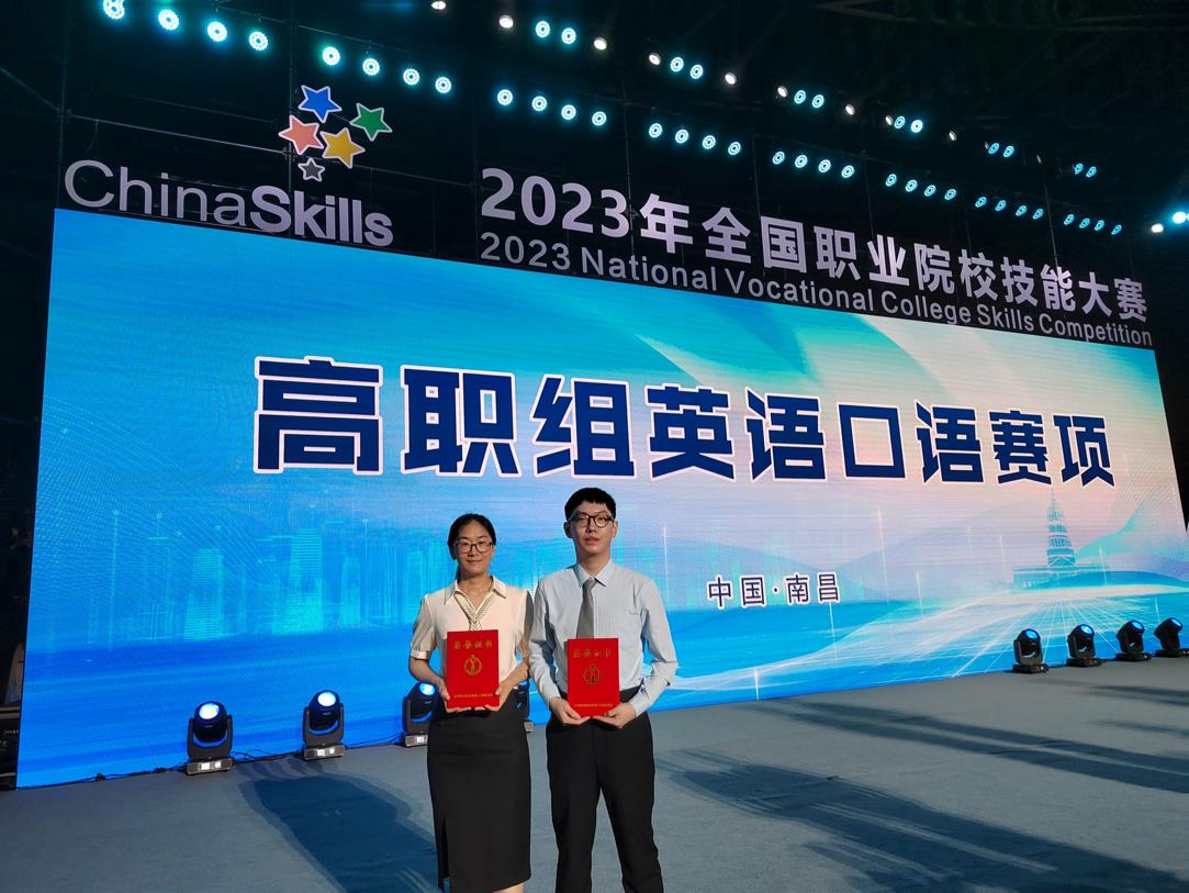 2023年全国职业院校技能大赛高职组英语口语赛项于7月13-15日在江西省南昌市举行,beat365张银杰老师和周诗杰同学获得专业组三等奖。本次大赛共有来自全国31个省、自治区、直辖市的60支参赛队伍参加。英语口语赛项由往年的学生参赛改为师生同赛,各院校师生同台竞技,通过“师生同赛”的创新竞赛方式,师生结为竞赛共同体,一同备赛,同台参赛。