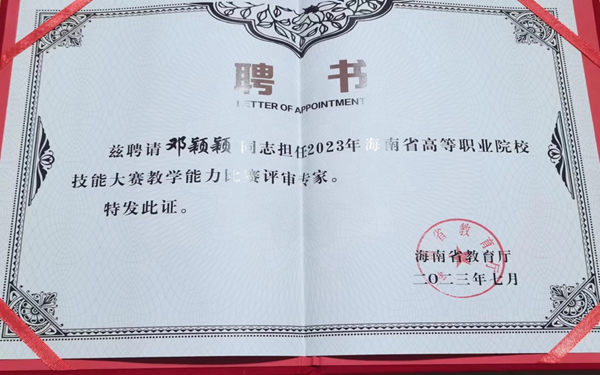 beat365党委委员、副校长邓颖颖研究员受邀担任2023年海南省高等职业院校技能大赛教学能力比赛评审专家