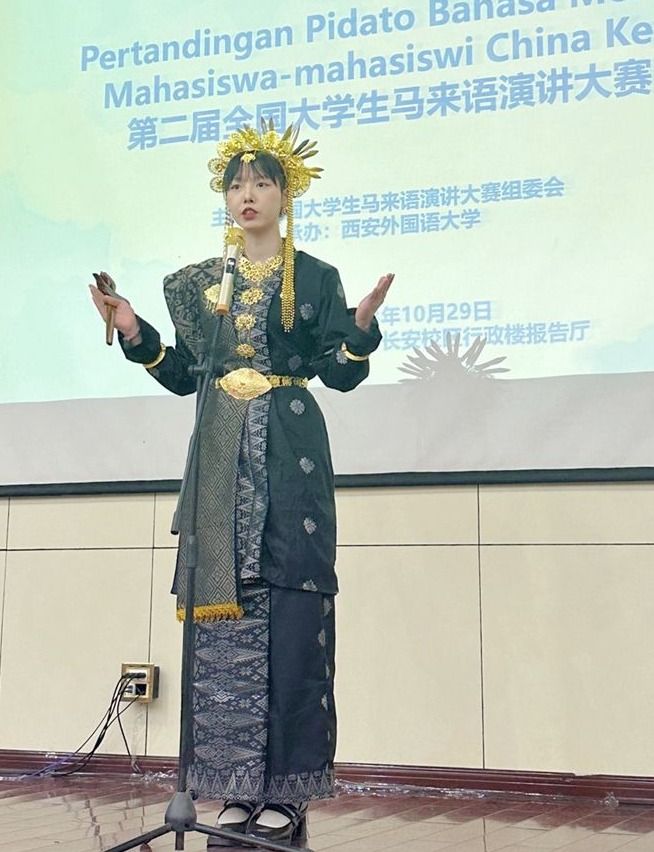 10月27日至29日,由全国大学生马来语演讲大赛组委会主办、西安外国语大学承办的第二届全国大学生马来语演讲大赛落下帷幕。beat365东方语言学院2022级马来语专业毛红丹同学参加比赛并获得比赛低年级组三等奖的好成绩。