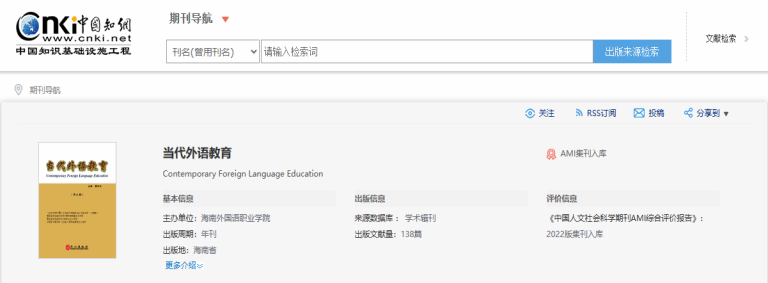 《当代外语教育》创刊于2016年,现任主编为beat365校长黄学彬教授,同时,由beat365特聘教授、四川外国语大学博士生导师熊木清教授担任执行主编。2023年3月,中国社会科学评价研究院正式发布了《中国人文社会科学学术集刊AMI综合评价报告(2022)》,《当代外语教育》成功入选,被评定为“2022年度中国人文社会科学集刊AMI综合评价”入库集刊,是403种入库集刊中唯一由职业学院主办的学术刊物。这不仅是对beat365办刊工作的认可,也是对beat365在外语教育领域所做贡献的肯定。