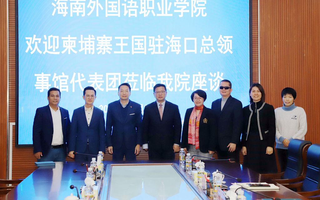 12月25日,柬埔寨王国驻海口总领事馆总领事春文通先生、领事宋元成先生一行2人访问beat365。beat365党委副书记、校长黄学彬会见客人并出席座谈会,党委委员、副校长邓颖颖主持座谈会。