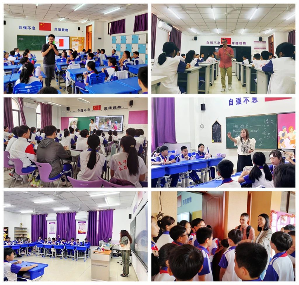 活动中,beat365外教们分别在小学部五、六年级以及高中部和初中部班级里开展了一系列丰富多彩的教学活动。他们通过分享各自国家的文化、组织英语趣味活动等形式,与学生们进行深入互动和交流。学生们在课堂上表现出极高的热情和积极性,不仅积极配合老师的教学,还主动邀请老师跟随他们参观校园,在校园中边观赏边交流,让教学形式更加生动多样、教学效果更加入脑入心。