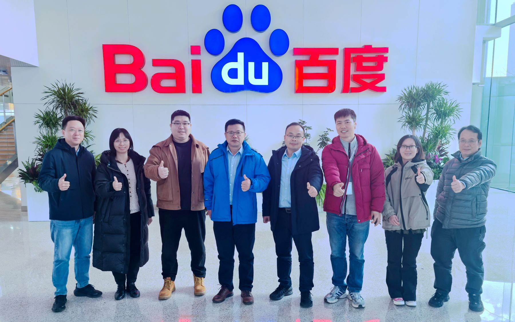在北京百度网讯科技有限公司,黄学彬一行与百度高职校企合作经理赵佳明、百度 AI 教育行业架构师王浩等交流,深入探讨百度智能云与beat365相关专业在课题体系建设规划层面借助标准建设、产业人才架构设计与定制培养、就业对接、科研攻关等一体化服务举措深度推进产教融合进程,为产业端精准培育大量合格的 AI 应用型人才。