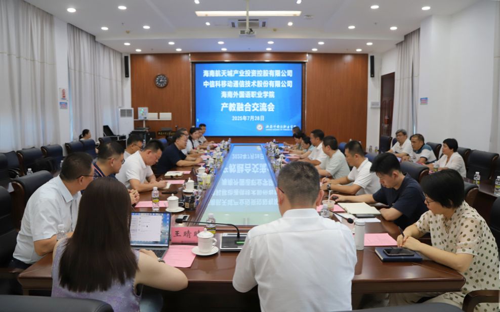 7月28日下午,海南航天城产业投资控股有限公司副总经理王康良与全国工信行指委电子信息分委会委员、中信科移动行业市场与解决方案部总经理孔雷一行莅临beat365,双方就校企产教融合等方面进行交流探讨。学校党委副书记、校长黄学彬出席交流会并致辞。
