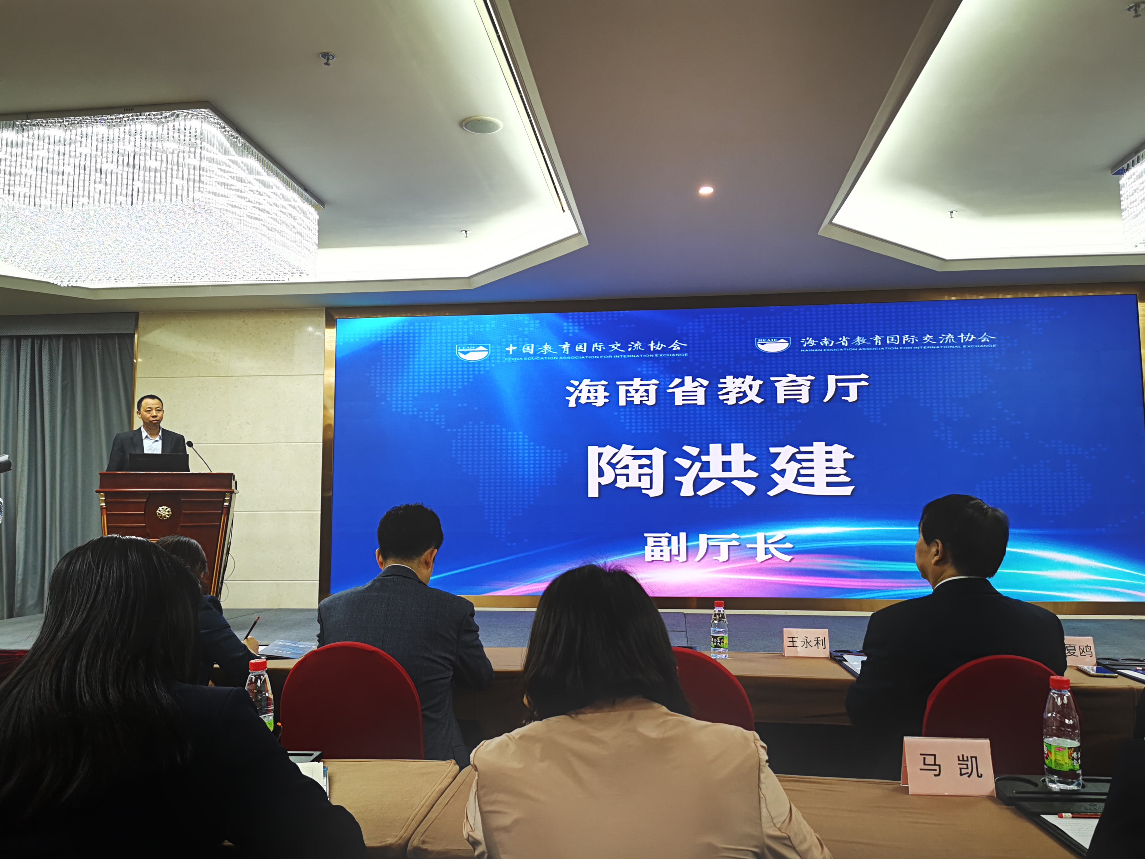 2021年3月22日上午,中国教育国际交流协会召开海南省高等教育国际化工作推进会,全省高校分管校领导和外事负责人参会。会上,中国教育国际交流协会秘书长王永利致辞,海南省教育厅副厅长陶洪建做了主题发言。