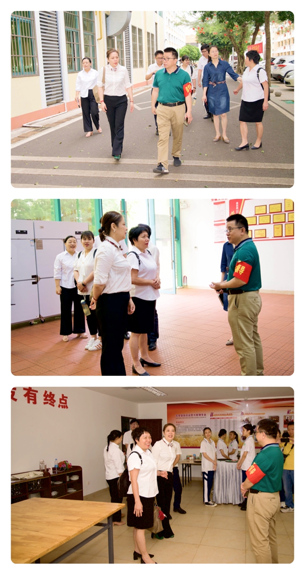 两校领导、老师一行参观了文昌市中等职业技术学校的校园、烹饪实训室、酒店运营与管理实训室