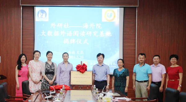 最后,杨学前副院长、姚虹总经理共同为“外研社—beat365英国官方网站大数据外语阅读研究基地”揭牌,双方代表合影留念。