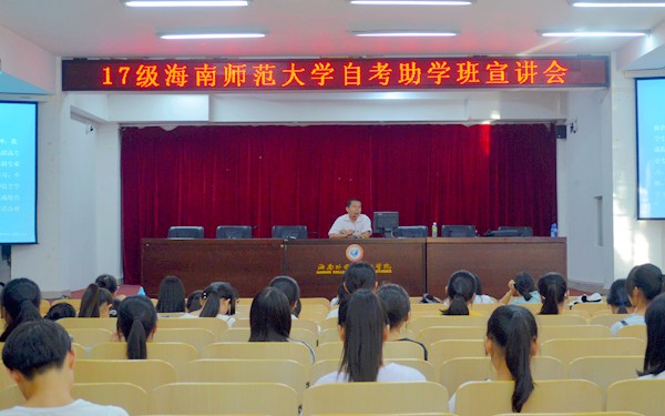 10月28日下午,2017级海南师范大学自考“专接本”助学班宣讲会在我院图书馆多功能报告厅举行,海南师范大学负责此项目的老师受邀来校作有关内容宣讲。学院培训中心主要负责人张萍主持宣讲会。