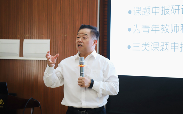 黄景贵以“高职院校教师课题申报指导”为主题,围绕高职院校科研改革举措、高职院校科研经验做法、教师课题申报改进建议等内容,作了一场生动精彩且指导性针对务实的课题申报培训。黄景贵从课题的目的和意义、拟题与选题等方面详细讲解了课题需要注意的方法和技巧,从确立课题名称出发,详细而有条理地介绍了课题申报表的填写,对课题名称撰写技巧以及课题的研究对象、框架思路、重点难点、主要目标、研究计划及其可行性等内容都做了详尽的介绍和解析,对申报书的撰写技巧做出了指导。讲座互动环节,黄景贵就教师们提出的问题进行详细解答,交流气氛活跃。