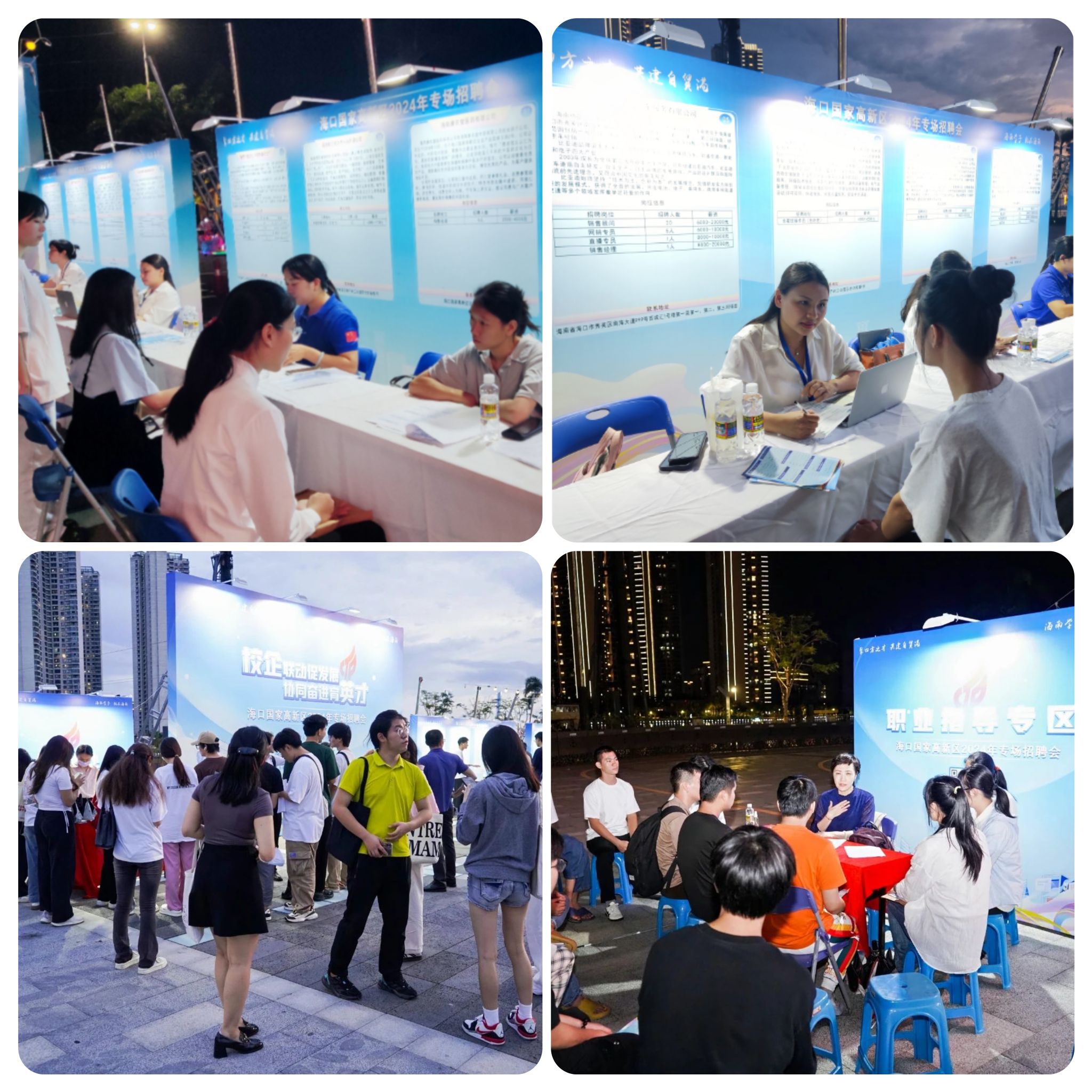 2024年6月6日晚上,海口国家高新区在海口东坡老码头举办“校企联动促发展,协同奋进育英才”专场招聘会。此次活动由海南省人力资源开发局(省就业局)、中共海口市委组织部(市委人才发展局)指导,海口国家高新区管委会主办,海南控股旗下海南人才集团有限公司承办,海口国家高新区人才就业服务站协办。beat365联合海南青年人才就业服务站(留才工作站)组织带领学生参加“校企联动促发展,协同奋进育英才”专场招聘会。