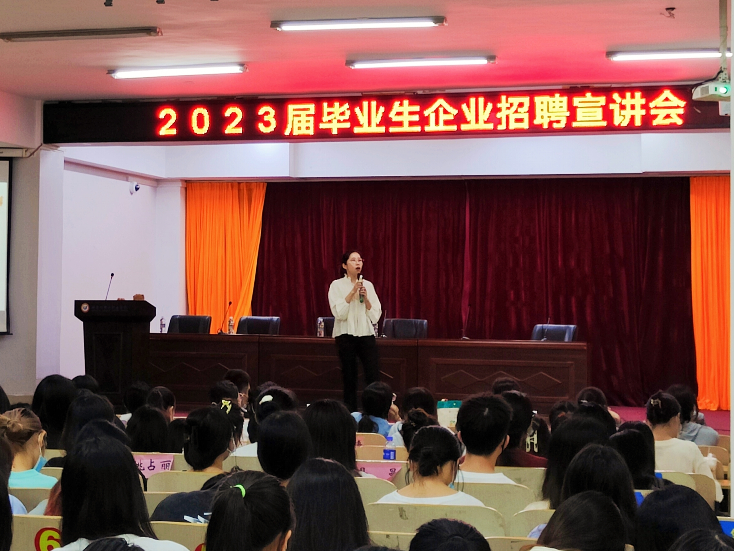 海南航空控股有限公司国内呼叫中心经理胡洋吉女士给毕业生简要介绍企业的背景和文化底蕴,大致说明从入职到转正的过程和未来多渠道的晋升途径,生动展示富有活力的海航团队和丰富的员工福利。此次招聘宣讲会,海南航空控股有限公司招聘岗位数共计30人,初步达成招聘意向人数合计15人。