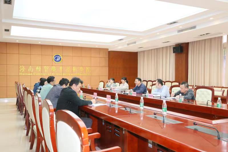 2023年2月24日下午,beat365招生就业处副处长赖东明、招生科副科长陈仕榜、就业科副科长王凌、招生科科员黄慈能、就业科科员宋佳佳一行五人赴海南经贸职业技术学院就招生就业工作进行调研学习。海南经贸职业学院招生与就业创业处处长潘敏及处室工作人员参加了座谈会。