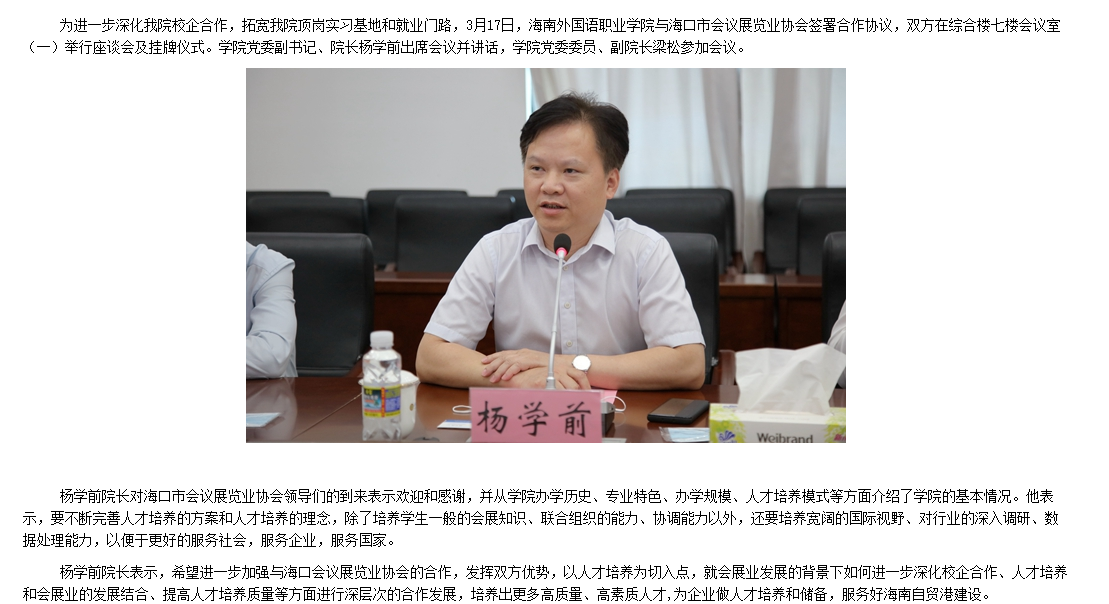 就业动态 当前位置: 首页 >> 就业动态 >> 正文 beat365英国官方网站与海口市会议展览业协会签署合作协议 发布日期:2022-03-24 点击: 上一篇:携手共进 深化合作 beat365英国官方网站 党委书记佴建乔一行赴琼中调研 下一篇:携手共进 深化合作 beat365英国官方网站 党委书记佴建乔一行赴琼中调研