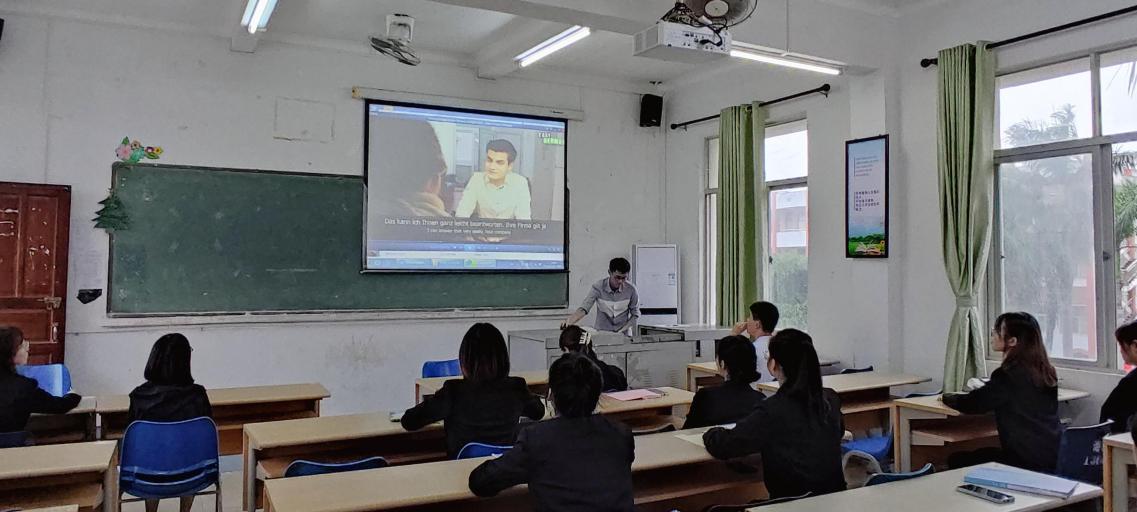 肖老师给学生播放德语求职视频让学生进行面试对话编写