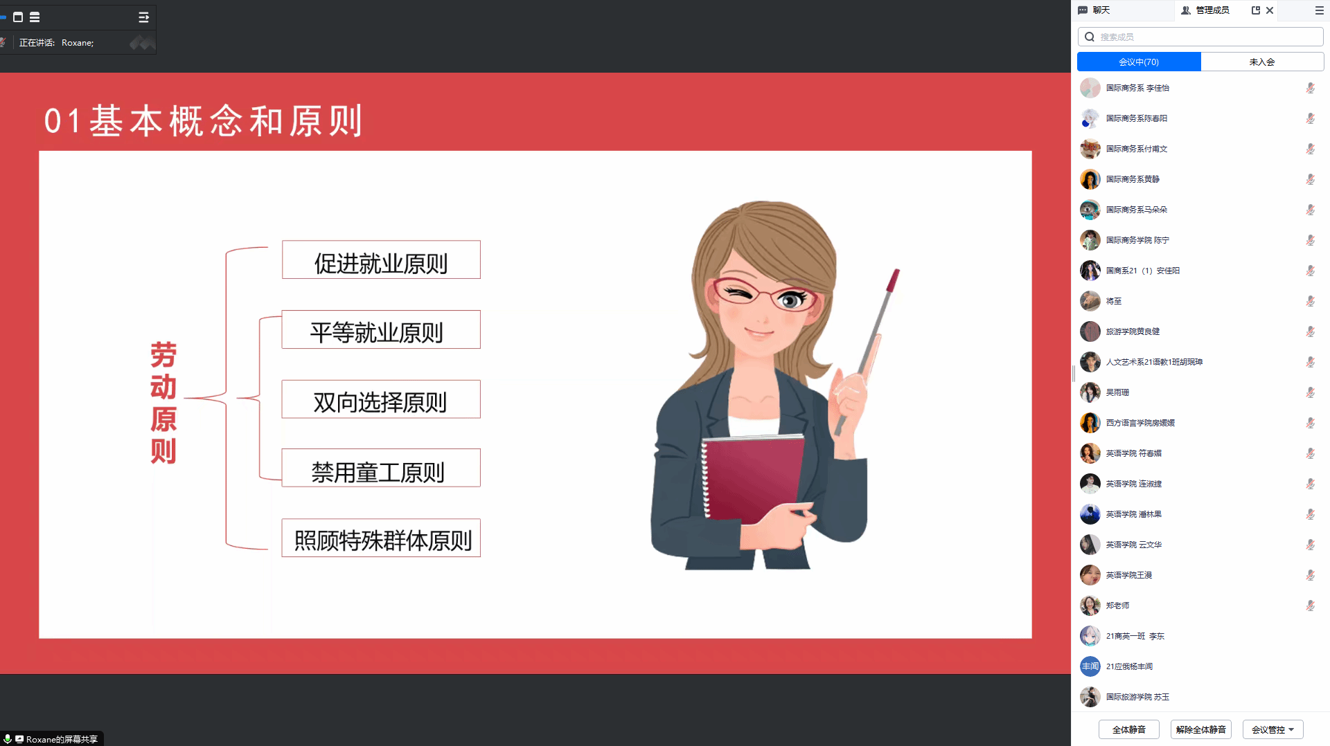 在这次讲座中,马贞导师从劳动法的基本概念和原则、劳动者的主要权利、劳动合同订立、履行、解除和常见的法律问题分析四个方面,结合案例为同学们介绍了劳动法律法规的相关知识,包括劳动领域的基本概念、涉及的法律规定、签订劳动合同等方面的法律规定。同时,她还分析了职场中常见的一些法律问题,如社会保障、劳动争议处理等方面的重要知识点。此外,马贞还提到了不同年龄段的人所适用的退休年龄,并解释了与劳动关系有关的各种类型。最后,马贞强调了劳动者和企业之间的法律地位,以及在职场生活中需要遵守的基本原则。希望大家在工作时能够保护好自己,避免遇到纠纷。