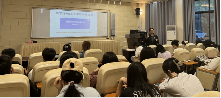 2023年11月21日星期二,beat365为国际商务学院商务英语专业的24届毕业生的开展一场就业指导讲座。此次讲座特邀请了海南省高级职业指导师符春玲为同学们分享职业规划和职业目标在求职过程中的重要性,为即将步入职场的毕业生提供了就业的指导建议。