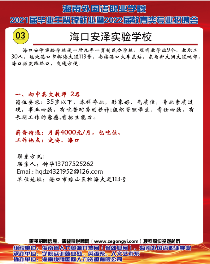 海口安泽实验学校招聘