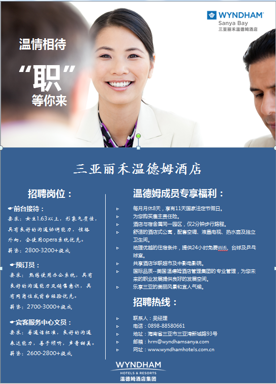 三亚丽禾温德姆酒店招聘