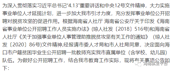 2020年面向海口市户籍贫困毕业生专项招聘公告(第一号)