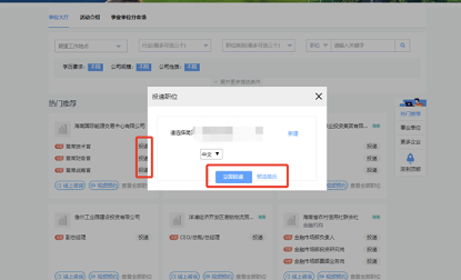 通过【期望工作地点】【行业】【职位类别】或更多选项中的【公司规模】【公司性质】【人才类型】【年薪待遇】初步匹配合适单位在进行针对性投递;