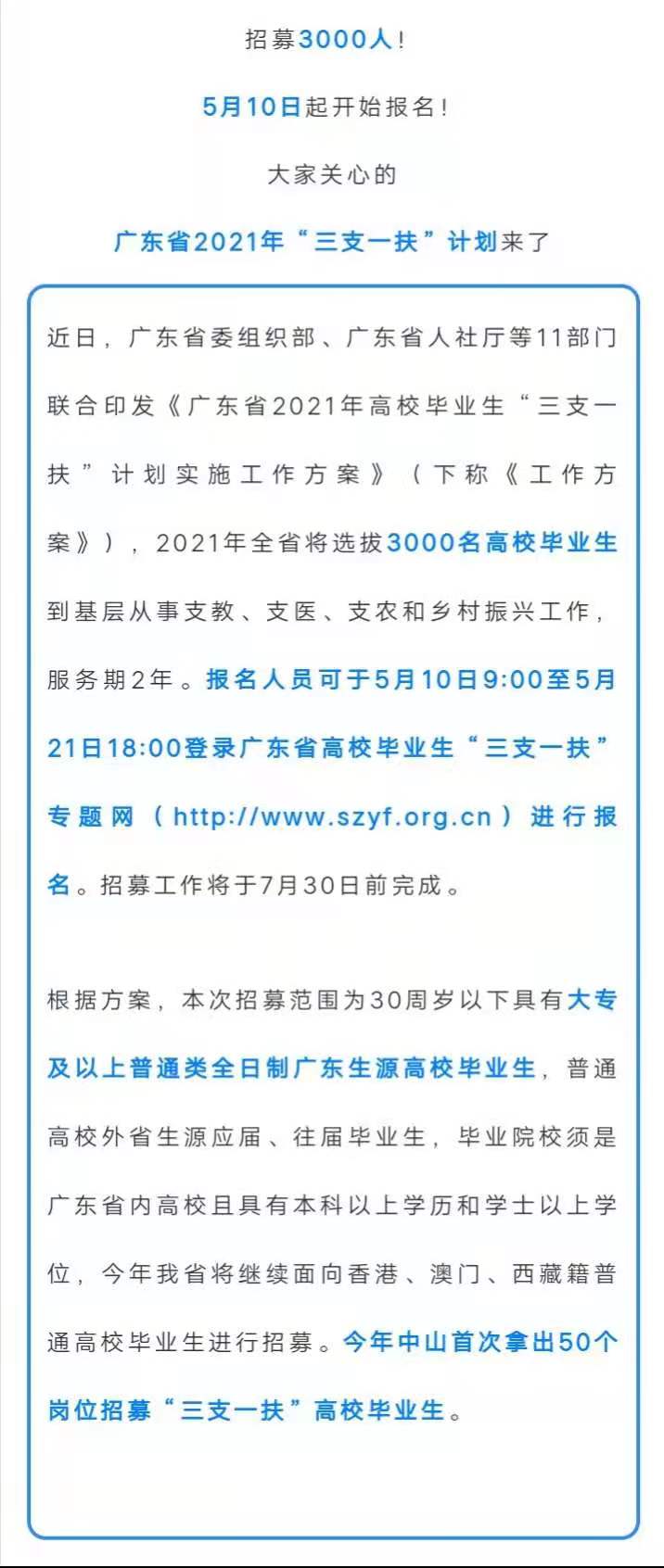 就业创业政策 当前位置: 首页 >> 就业创业指导 >> 就业创业政策 >> 正文 广东籍学生看过来!2021广东三支一扶新政策 发布日期:2021-05-11 点击: 上一篇:就业政策宣传--“特岗计划”要让更多教师归“乡” 下一篇:吸引留住高校毕业生建设海南自由贸易港的若干政策措施
