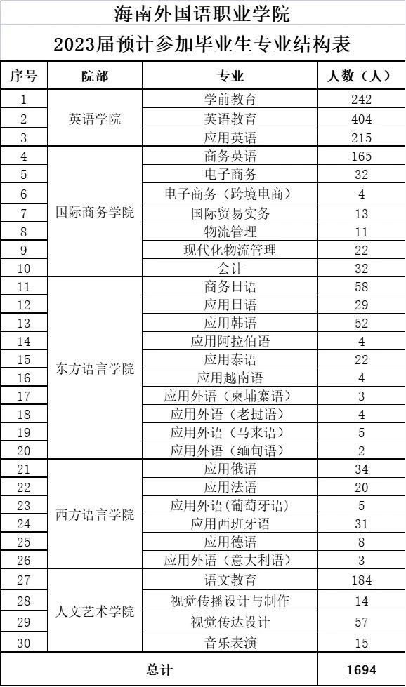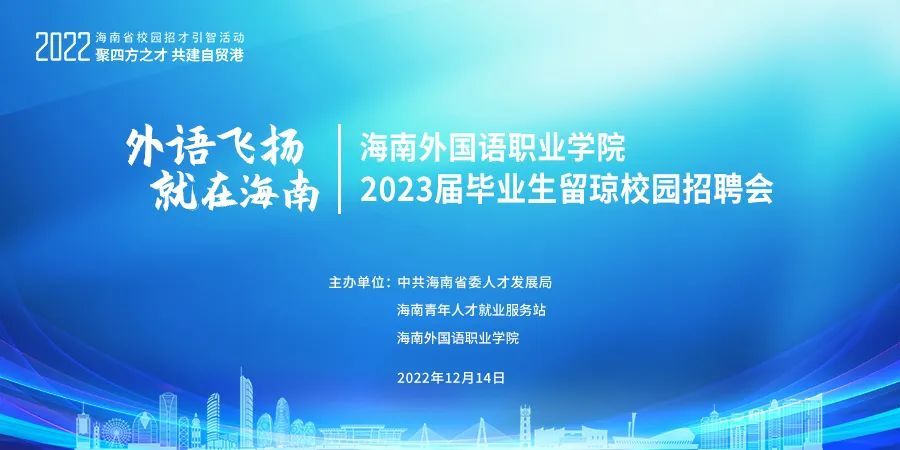 beat365英国官方网站是海南省唯一一所公办全日制外语类高校,专业涵盖外语、商贸、旅游、艺术类,2023届毕业生共有34个专业(方向)2393人。 为更好地服务学生就业,满足广大用人单位对人才的需求,促进学院、毕业生、用人单位之间的交流与沟通,我院定于2022年12月14日(星期三)举办“外语飞扬,就在海南”beat365英国官方网站2023届毕业生留琼校园招聘会,现真诚地邀请用人单位前来我院指导工作和选聘优秀毕业生。我们将竭诚为您服务,现将招聘会有关事项告知如下。