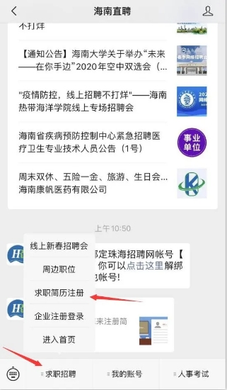 1、搜素关注“海南直聘”公众号