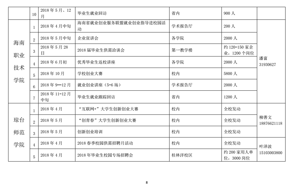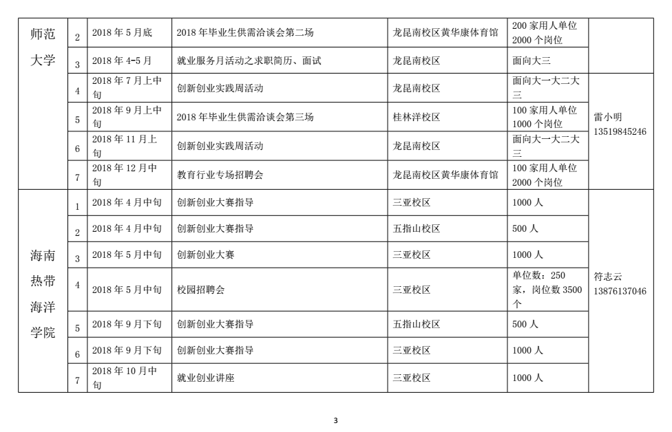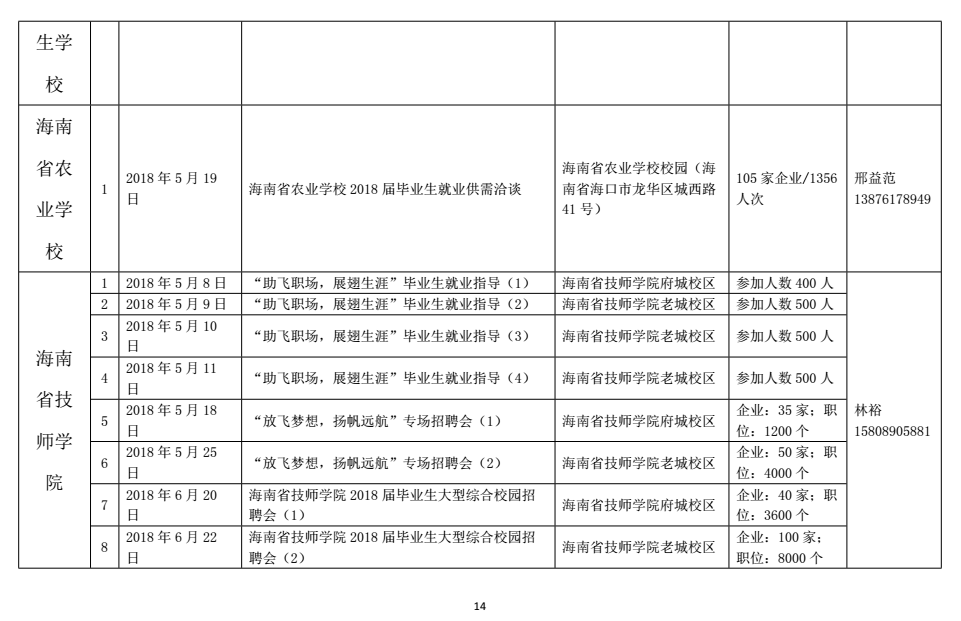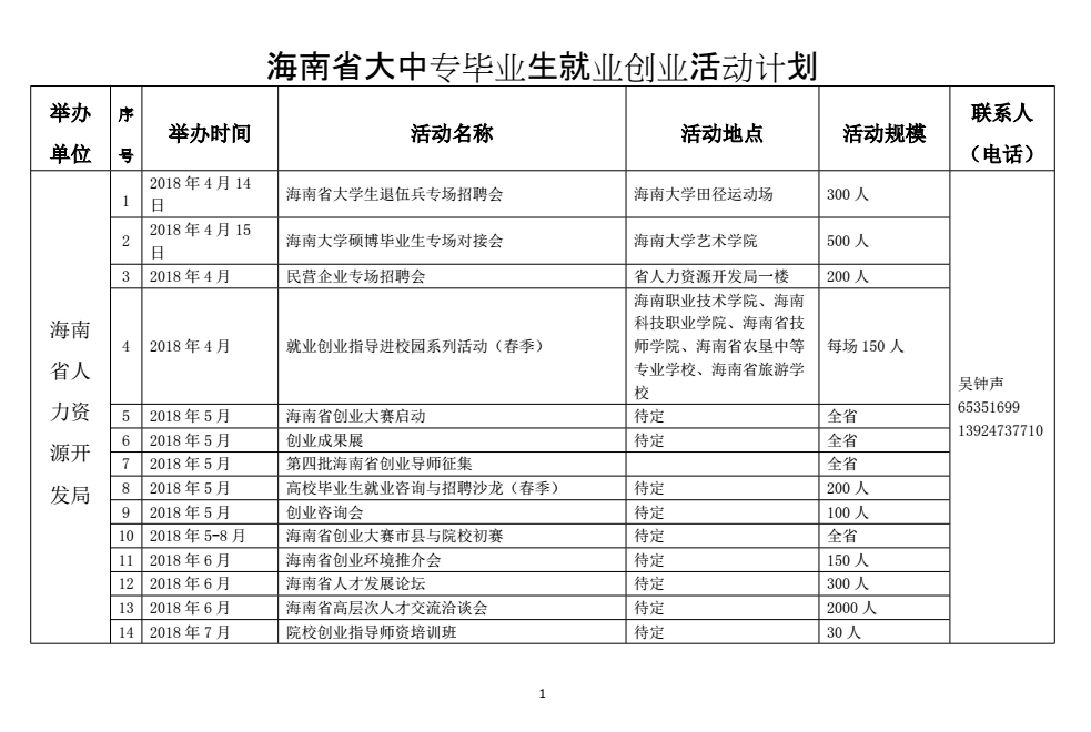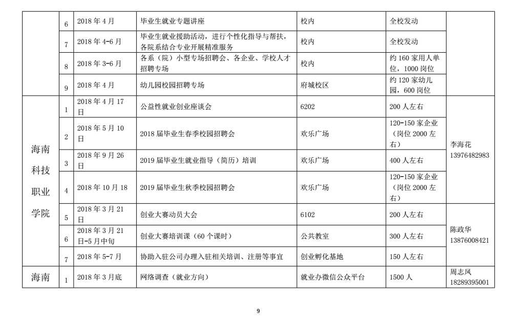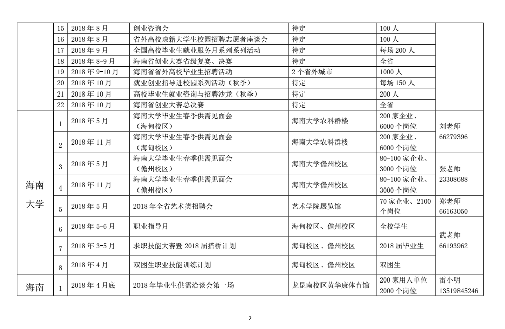 通知公告 当前位置: 首页 >> 通知公告 >> 正文 海南省大中专毕业生就业创业活动计划 发布日期:2018-03-30 点击: 上一篇:2018届毕业生求职创业补贴申请名单公示 下一篇:beat365英国官方网站 英语系2018届毕业生、 国际商务系2019届电子商务专业实习生 专场招聘会招聘单位名单汇总