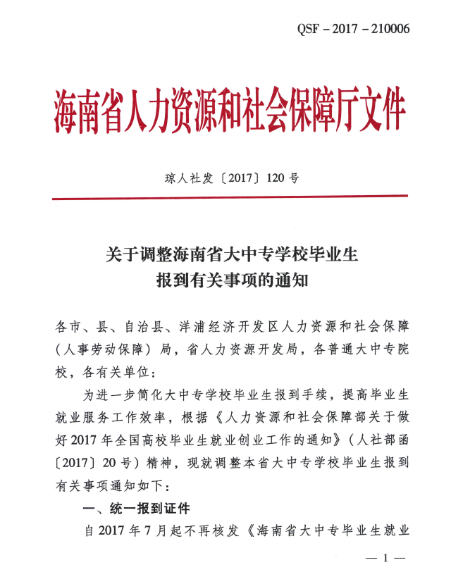 通知公告 当前位置: 首页 >> 通知公告 >> 正文 转发海南省人社厅关于调整海南省大中专学校毕业生报到有关事项的通知 发布日期:2017-05-26 点击: 上一篇:转发关于举办电子商务行业面向2017届毕业生网上招聘活动的通知 下一篇:全国就业创业工作暨2017年普通高等学校毕业生就业创业工作电视电话会议