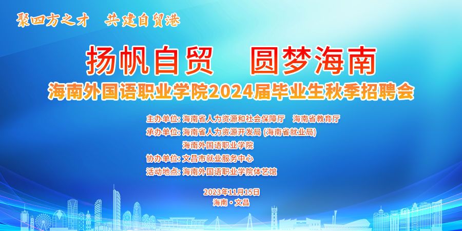 为更好地服务学生就业,满足广大用人单位对人才的需求,促进学校、毕业生、用人单位之间的交流与沟通,beat365英国官方网站定于2023年11月15日(星期三)举办“扬帆自贸,圆梦海南”beat365英国官方网站2024届毕业生秋季招聘会,现真诚地邀请用人单位前来beat365指导工作和选聘优秀毕业生。
