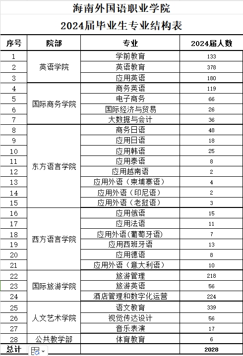 2024届毕业生专业结构表