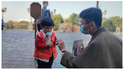 在漫游童话时光的宣传岗位,给爬到世界上最高迪士尼城堡游客带来祝贺,主管发的礼仪卡。