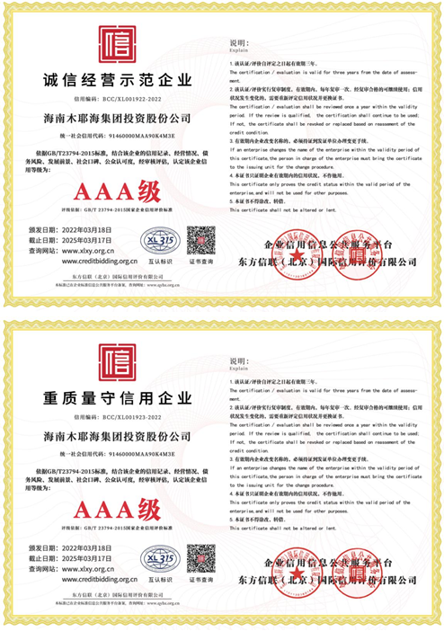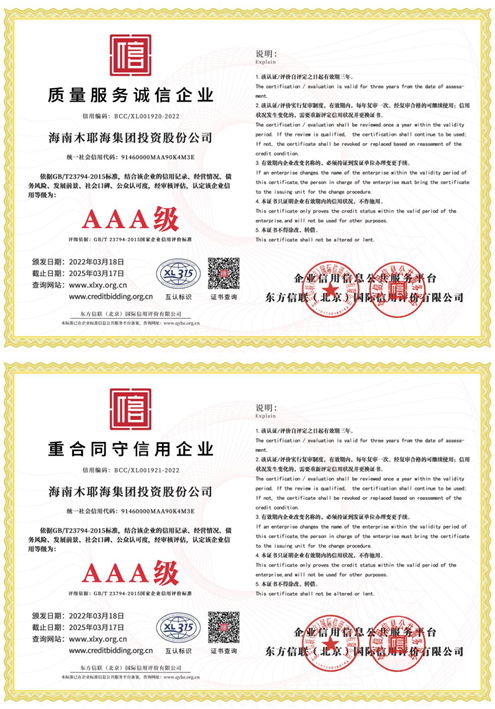 重合同守信用证书